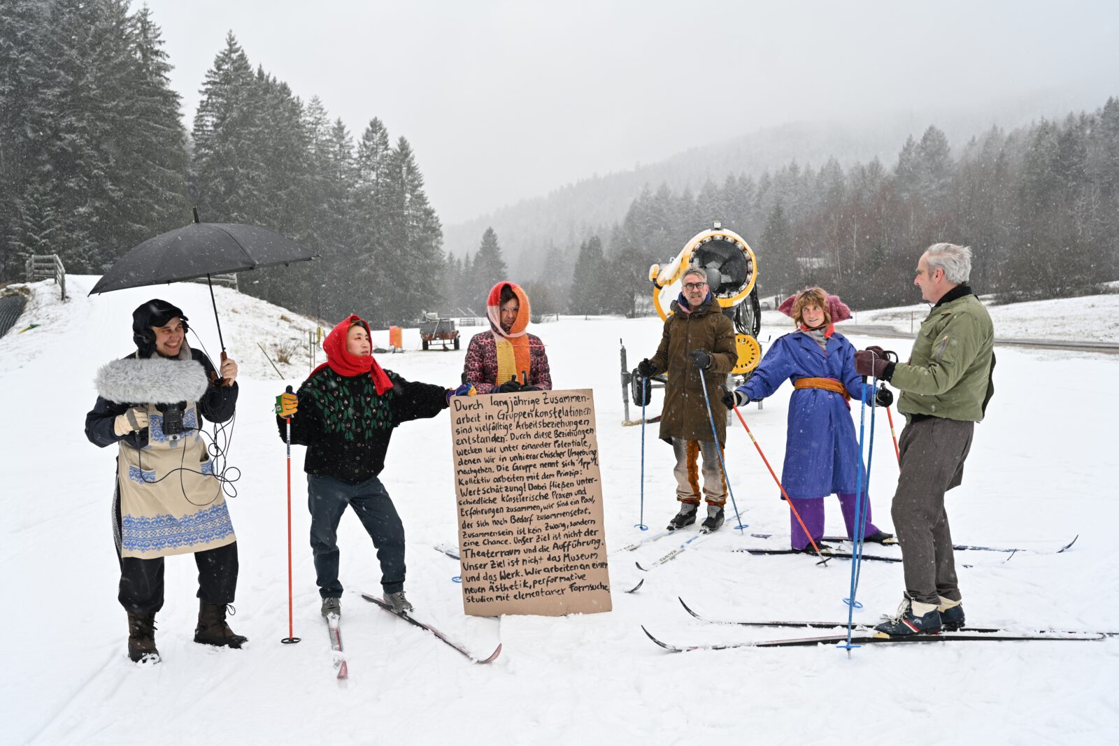 Text um sich besser kennenzulernen (formerly known as Manifest) >>>> Durch langjährige Zusammenarbeit in Gruppenkonstellationen sind vielfältige Arbeitsbeziehungen entstanden. Durch diese Beziehungen haben wir Vertrauen zueinander entwickelt, was eine elastische Arbeitsweise ermöglicht. Unsere Gruppe nennt sich: 1pp1. Be- und entstehende Hierarchien können fruchtbar sein, wenn sie beatmet werden und zirkulieren. Wir arbeiten gruppig mit dem Prinzip: Wertschätzung! Dabei fließen unterschiedliche künstlerische Praxen und Erfahrungen zusammen, wir sind ein Pool, der sich nach Begehren um Ideen gruppiert. Es gibt neben der inneren Zwiebel viele Assoziierte, die äußere Zwiebel. Zusammensein ist kein Zwang sondern eine Chance. Wir arbeiten an Ästhetik und Inhalt, performative Studien mit elementarer Formsuche. Durch unsere interdisziplinäre Zusammensetzung sind wir überall zu finden, auf Buchmessen, in Projekträumen, bei Filmfestivals, im Radio, auf der Strasse, in großen Institutionen, auf unserem Label und im Internet. Wir haben mehrere Organisationsformen: die Gruppe arbeitet gruppig (1pp1), eine Person wird von der Gruppe bei ihrem Projekt unterstützt (Personenname (1pp1)), und sobald Mitglieder von 1pp1 etwas starten, kann es eine Arbeit von 1pp1 sein. 1pp1 will aufhören zu produzieren. 1pp1 übernimmt Verantwortung. 1pp1 ist handlungsfähig, auch wenn Einzelne fehlen. >1pp1